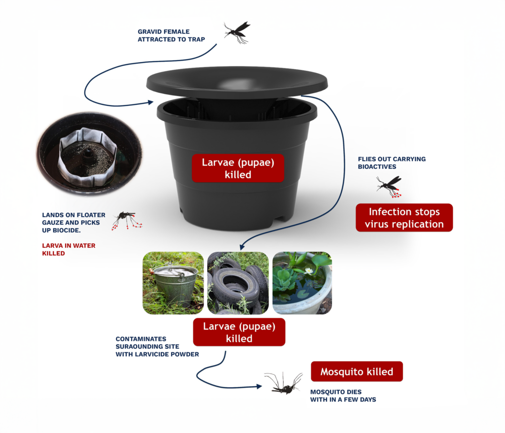 In2Care® Mosquito Control is a multi-impact mosquito control system designed to work beyond traditional spraying. By using mosquitoes to carry treatment back to hidden breeding sites, the system interrupts the life cycle at the source, reducing population growth where it starts.
